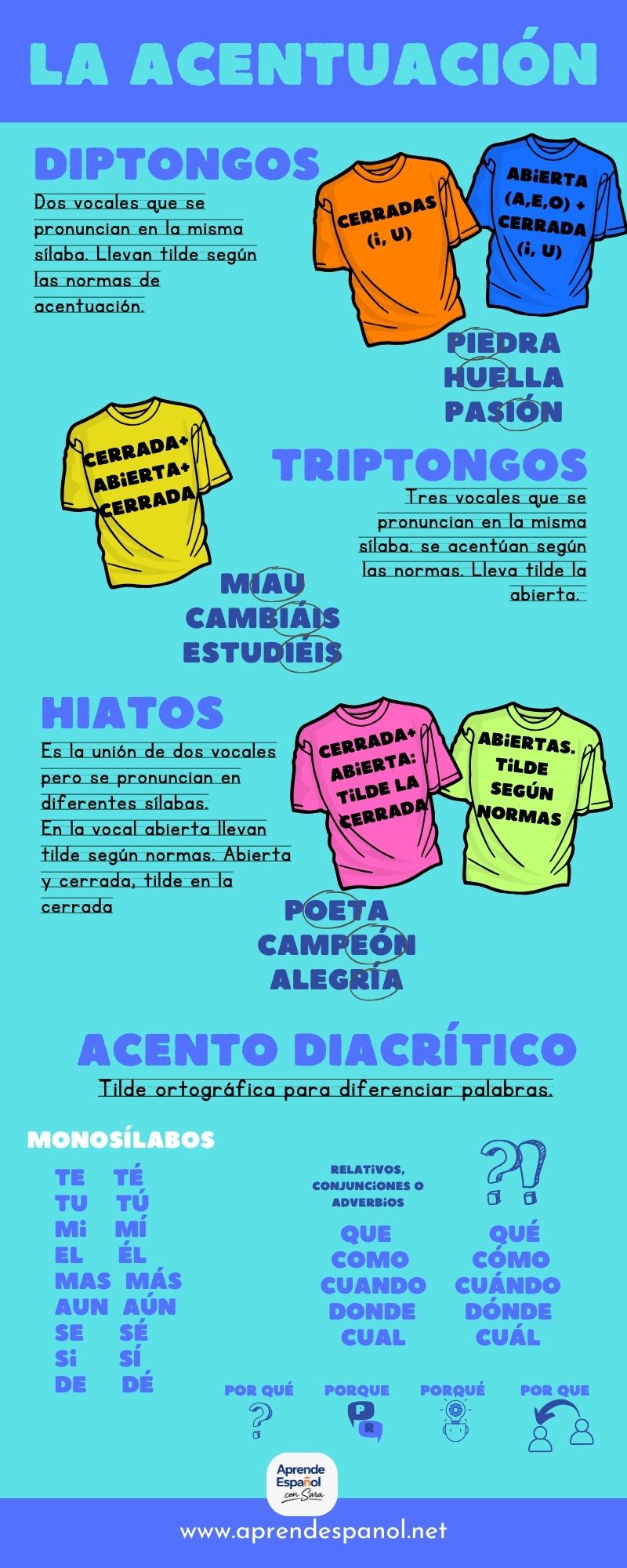 Reglas de acentuación en Español, excepciones, acento diacrítico y reglas más importantes para dominar la acentuación en español.